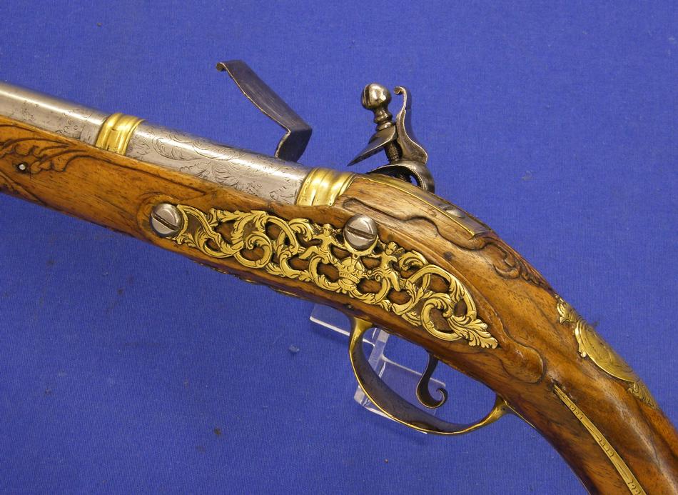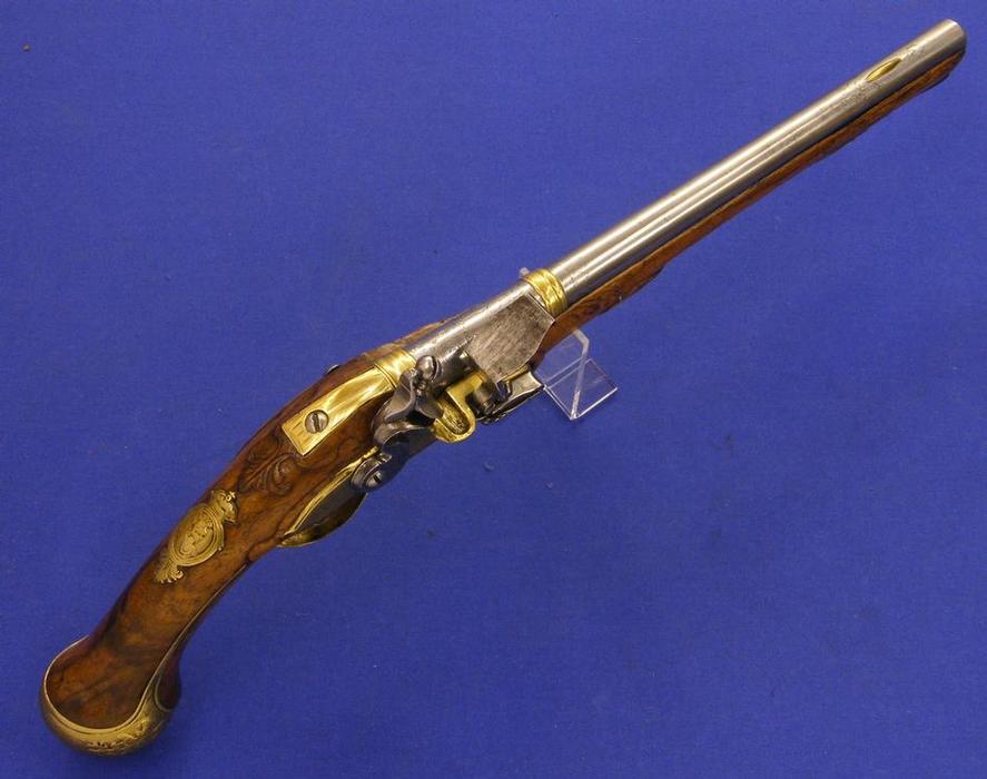 A very nice Dutch Flintlock Pistol by Christoph Wanner a Mastrich, about 1720, caliber 16 mm, length 52 cm, in mint condition