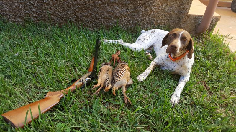 Buenas compañeros, hoy otra jornada mas y aunque he portado una de mis paralelas, he cazado con la negra, usando solo el culote de los cartuchos que recorto para sacar el perdigon y el resto recargar como siempre, lo malo es el engorro de llevar la baqueta a la cintura en estos montes con tanta maleza, pero me he divertido y alguno que me a visto, me a dicho" ...que forma mas rara de cazar..."jajaja, no se lo creia.Dejo unas fotos.Buen finde y buena caza.