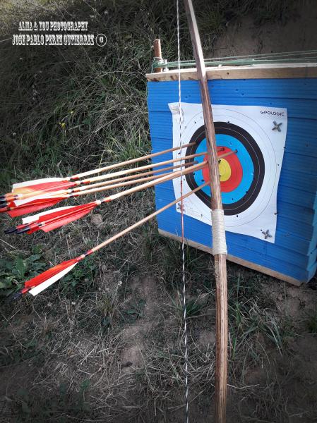 Bueno compañeros, aunque no sea avancarga, pongo unas fotos del arco que me llego hace un mes.Comentaros que esta realizado totalmente manual, con herramientas anteriores al año 1900 y sin usar un solo cacharro electrico.Han sido 80,00 h de intenso trabajo, algo impagable.Tambien comentaros que la madera es de cedro y logicamente sin ningun componente de fibras, lo que si tiene por la parte delantera del cuerpo, es cañamo , pegado con un pegamento casero de receta ancestral, asi como el cañamo de agarre del arco, de casi 2m. de largo.Ahora toca entrenar ( con flechas de madera ), ya que durante los dias que salgan con buen tiempo, tocara recechar con el, es un poco raro lo de no tener ventana en el arco, pero te acostumbras rapido, lo unoco hay que apuntar un pelin a la derecha para compensar esa falta de ventana y tampoco se puede abusar de el con mucho agua.Es un arco que por sus caracteristicas no permite el anclaje, ya que terminaria partiendo.Espero que disfruteis con las fotos.Saludos.