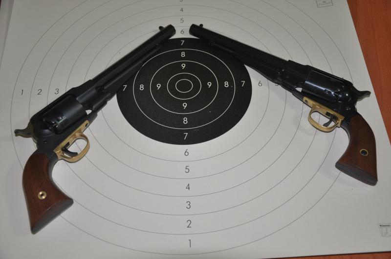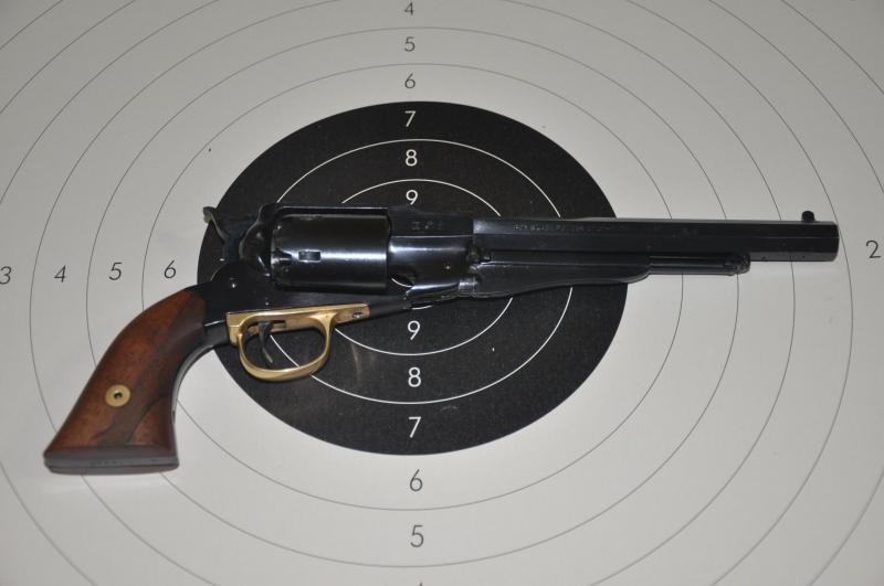 Pasemos a los revólveres los dos del 44, el primero un 1858 de la casa Pedersoli.Mecaniza estupendamente bien y tira todavía mejor, si tiro con apoyo no mete los tiros uno encima del otro sino que hace un boquete en el blanco. Lástima que el que lo empuña sea más malo que el tabaco holandes :mrgreen: , je, je