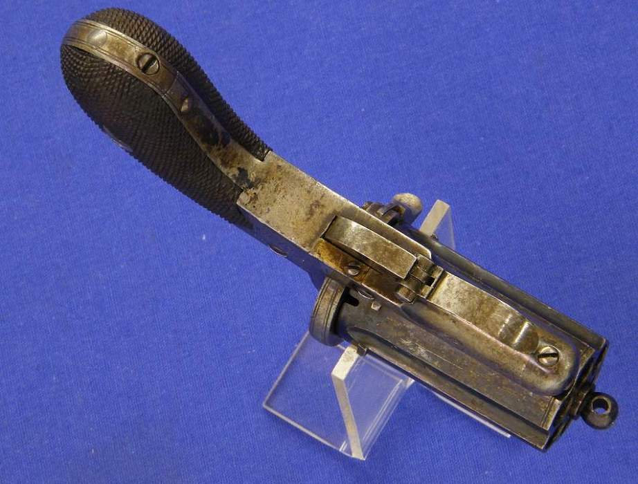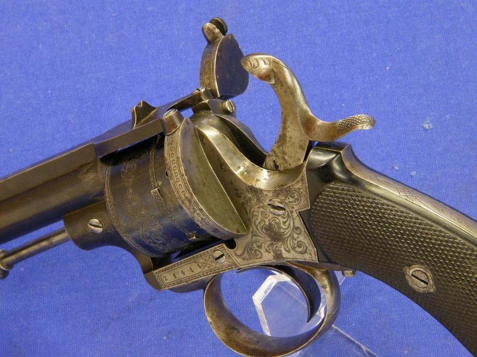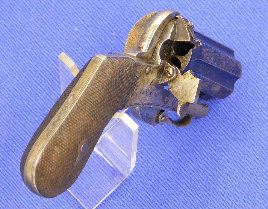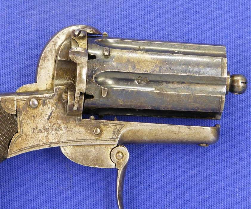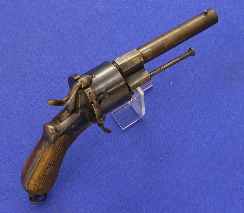 A good French 19th century Pinfire Revolver, 6 shots, caliber 11 mm, length 26 cm, marked "8", in good condition . Price 450 euro