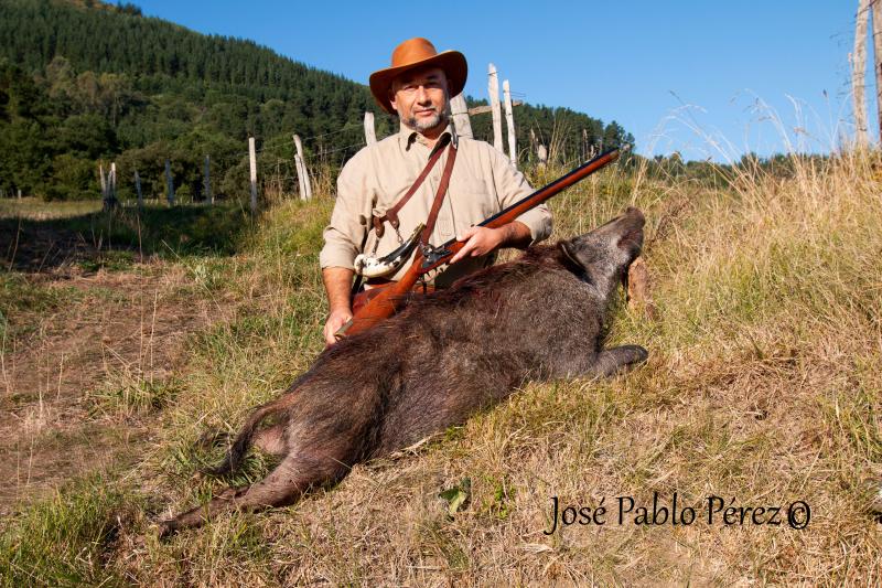 Bueno compañeros, despues de ir varios dias seguidos y ver como estaban entrando los bichos, me plantee la espera con avancarga, dude entre el calibre 45 o el 50, ya que ademas de las piaras rondaba un gran macho, finalmente me decidi por el kentucki 45 de chispa, le puse 60 grs de 3FFF y sabot de 250 grs.
