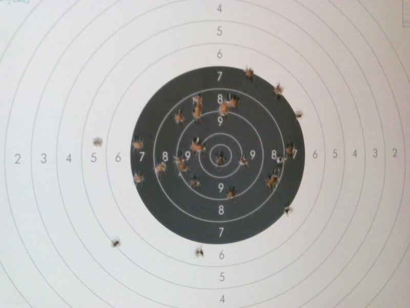 Lo de "no salirme del 8" es tirando apoyado. Si tiro "a pulso" la cosa cambia, generalmente hago puntuaciones como las de la foto adjunta...