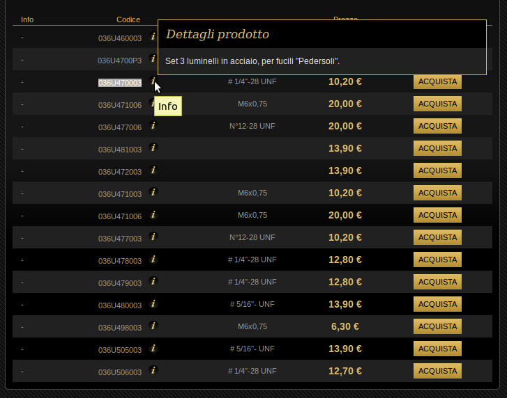 Creo que es Cod. 036U4700-3 y la rosca es 1/4" -28 UNF