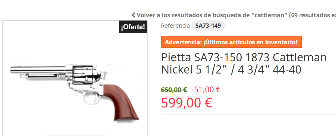 Gracias, el caso es que no es más caro... creo que inicialmente si lo sería. Verás tengo un uberti outlaw 45lc 7 1/2", y para complementar busco un cattleman 44/40 5 1/2", y dentro de la extraña y limitada disponibilidad actual (nuevos en trelles) de modelos y precios son los que más me cuadran, es más caro el niquel incluso rebajado que el liberty pero bueno esa diferencia me da igual lo que intento averiguar es si aparte de estética y material de las cachas tienen alguna diferencia interna relevante.