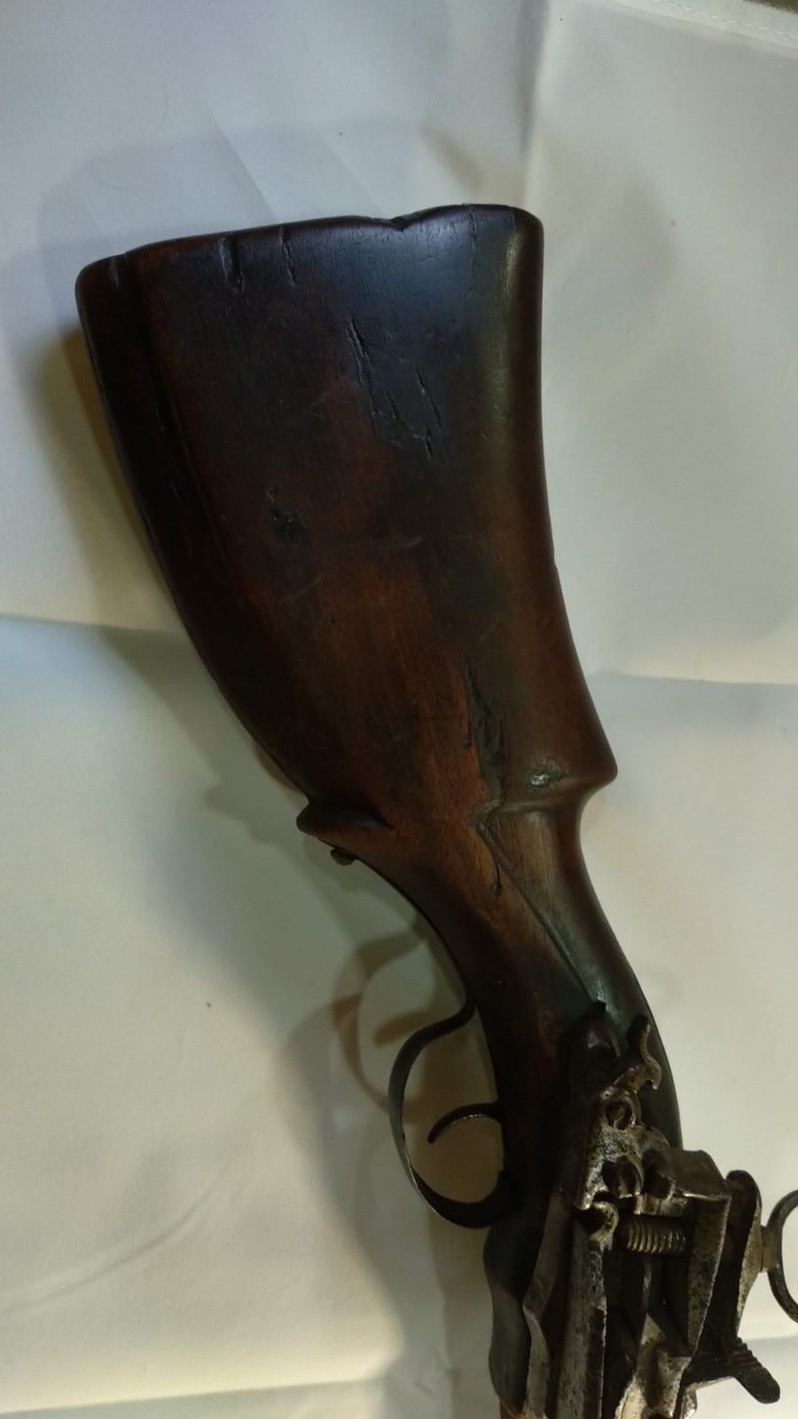 Hola a todos , soy nuevo en el foro y me han regalado un mosquete o eso parece, ya que la culata y el cañón son mas cortos de lo normal. La llave es del estilo de miquelete, pero no tengo mas detalles porque no tiene ninguna marca ni en el cañón , ni en la llave. A ver si los Pros del grupo pudieran ayudarme a identificar.