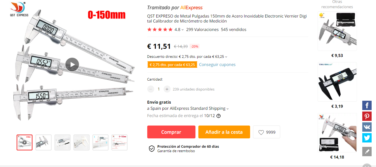 manolosolo escribió:Por una media de 10 €, puesto en casa, tienes un calibre digital, que funciona de maravilla, y vale para todo.........![]()