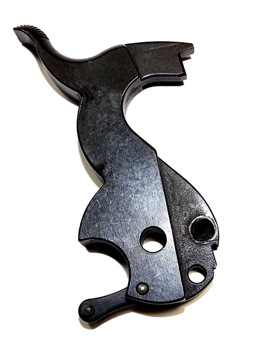 el diente de arriba es el seguro, el de debajo el del disparador situados abajo a la derecha de la imagen. Mirate tambien como esta la punta del diente que se apoya alli, situado en un extremo del gatillo