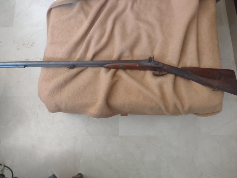 Hola. Por lo que se puede ver en las fotos, que no es mucho, se trata de una escopeta de avancarga de dos cañones. Parece de factura inglesa, o una imitación de las mismas que se hacían en Bélgica. Este tipo de escopetas y con diferentes acabados y modelos (algunos de lujo, de firmas como John y Joseph Manton, Mortimer, Gallyon, etc.) se fabricaron en pistón desde 1830-35 hasta finales del siglo XIX y en Bélgica se siguieron fabricando hasta bien entrado el siglo XX para la exportación, bien para los indios y tramperos del Canadá o para algunas tribus de África o pueblos de Sudamérica.