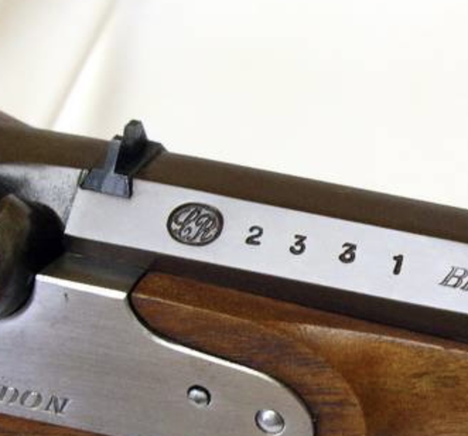 La mía también tiene troquelado el anagrama LR dentro de un óvalo, y en la cara superior del cañón tiene grabado D.EGG (de Durs Egg)