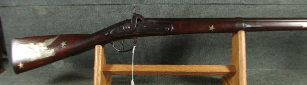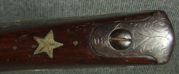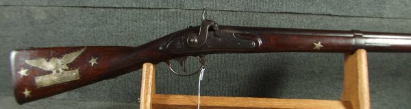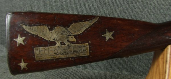Springfield M-1816 Flint Musket Conversion to Percussion and Presented, with military decorations and embellishments. The presentation is on the top of the barrel but illegible. It has a type III Military Conversion, the lock is dated 1830 along with barrel. The guns shows honest handling marks, but never sanded or buffed. Dark chocolate patina. Functional. These guns were used in the Mexican-American War of the late 1840\'s, and certainly the presentation went to an officer of that era. I will try to enhance the inscription with my camera to see if the name can be made out. Jefferson Davis, and many other officers who became prominent figures in the Confederacy got their start in the Mexican-American War. Very good overall. Smooth bore in about .69 caliber