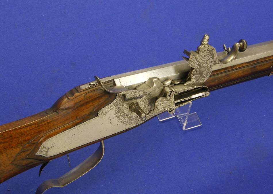 Este rifle es un tipico trabajo de Johann Peter Bosler en Darmstadt.