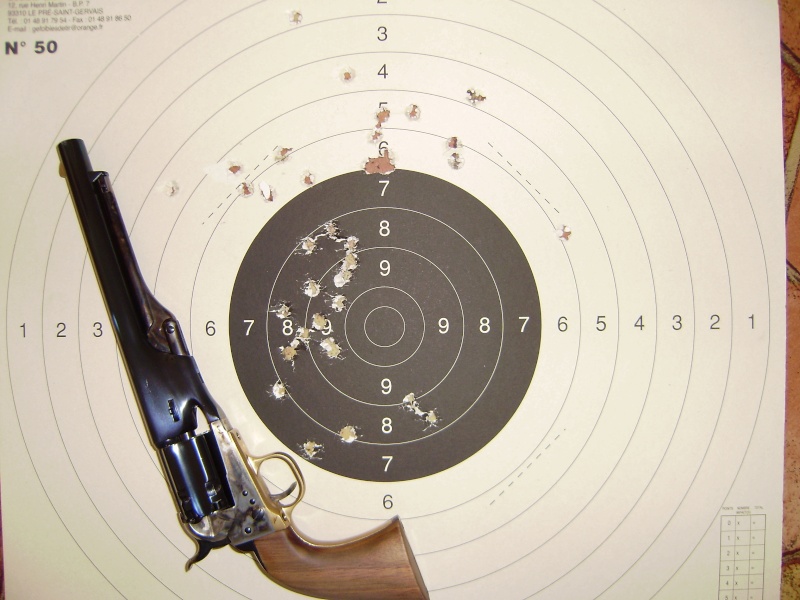 Yo me introduje en este negro mundillo con un Colt Navy de Pietta, ya va para 2 años que lo tengo y la verdad es que aun no he conseguido domarlo, tiende a mandar los disparos un poco altos y a la izquierda, hay días que los agrupa y otros que no. Los compañeros, más expertos y mejores tiradores que yo, me han dado consejos de todo tipo para mejorarlo, retocar el mecanismo de disparo para reducir el arrastre, cambiar el punto de mira, limar la muesca del martillo, etc....Y es posible que todo eso pueda funcionar peerooo....paso, me gusta tal y como esta no quiero mutilarlo de ninguna manera. Para hacer puntos ya lo intentare con mi proxima adquisicion...Un Remington Inox.