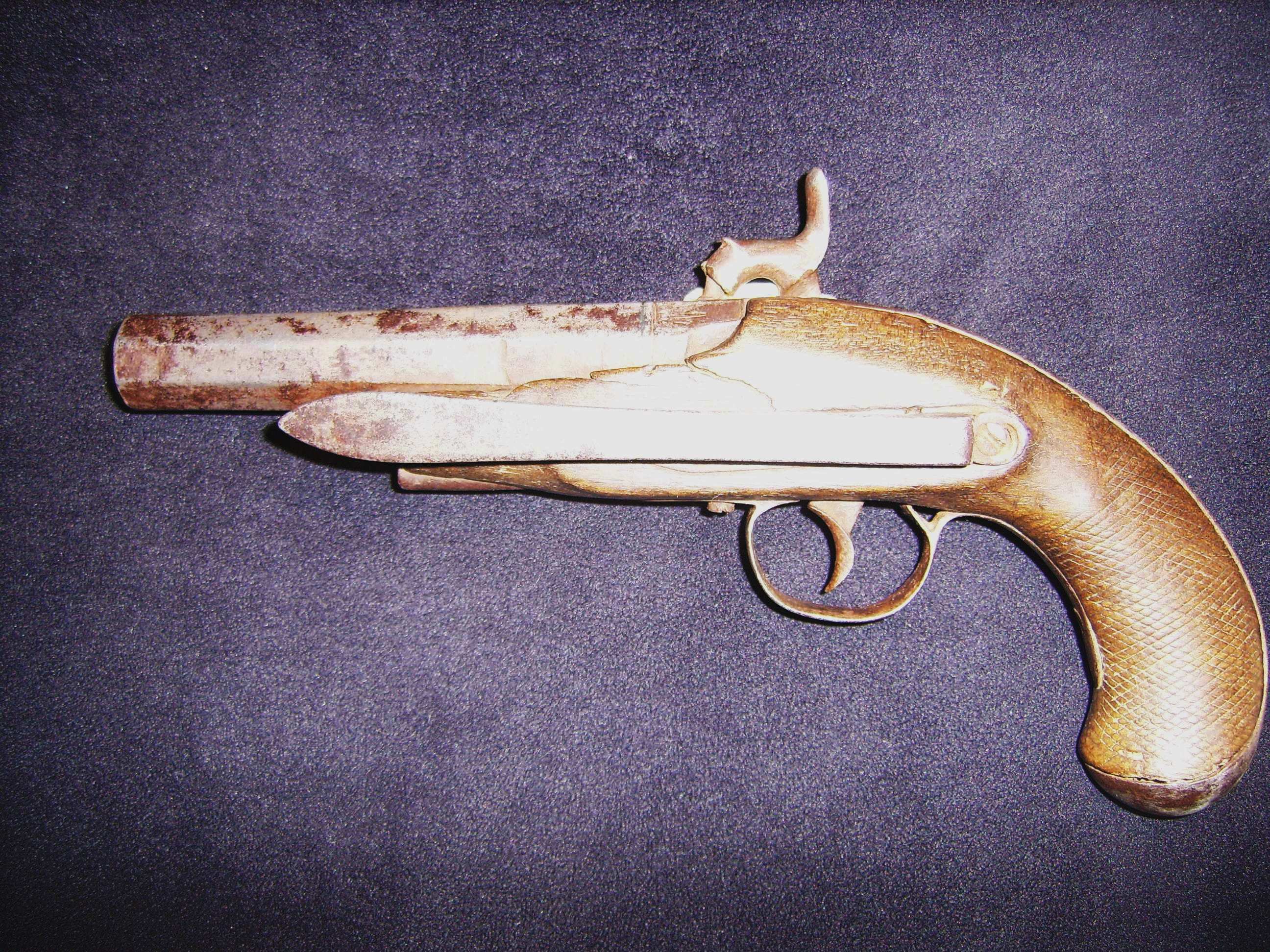 Es una pistola de pistón con llave española o de Miguelete, de las llamadas de viaje. De el armero, seguro que el amigo BUSMAN te dirá pelos y señales.