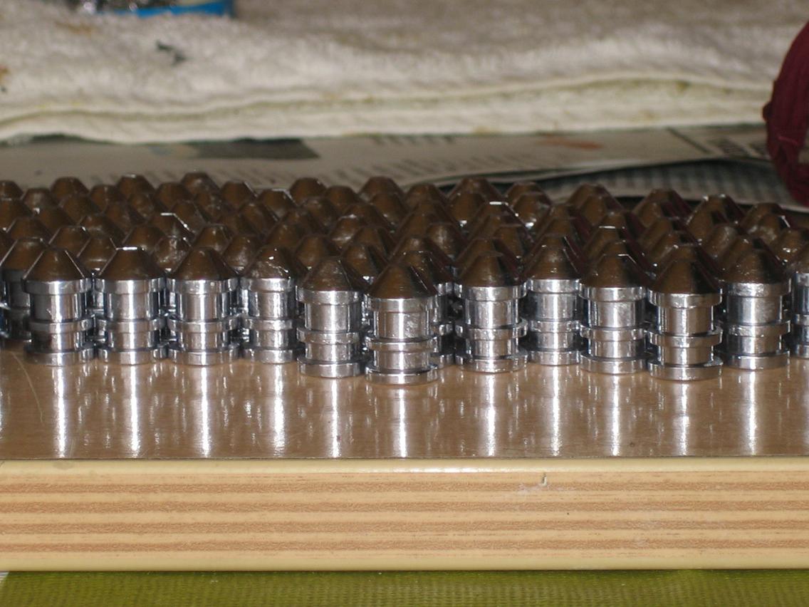Hola compañeros adjunto fotos de mi primera experiencia de fundir balas,despues de que se calentara el horno y dejara de echar humo empece a poner lingotes hasta la mitad de su capacidad le puse la cera y cuando termino de quemarse removi el plomo con una cuchara para sacar la escoria , a partir de ese momento regule la altura para la turquesa calente un poco la turquesa con soplete de fontanero y empece a fundir, las primeras no salieron bien del todo las deseche y segui fundiendo y este a sido el resultado.