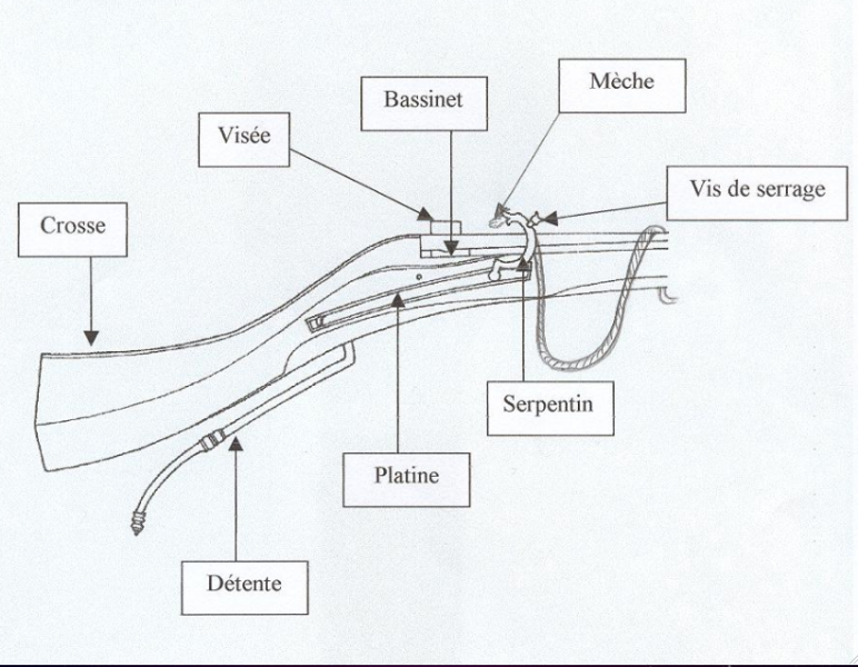 Soy traductora y tengo problemas con la traducción de la terminología de la pistola de rueda y del mosquete de mecha. De modo que escribo por alguien me puede ayudar con algunos términos. El cliente me ha facilitado imágenes con la terminología en francés, pero aún así me está resultando imposible encontrar algunos términos en castellano. Adjunto las imágenes a este mensaje.