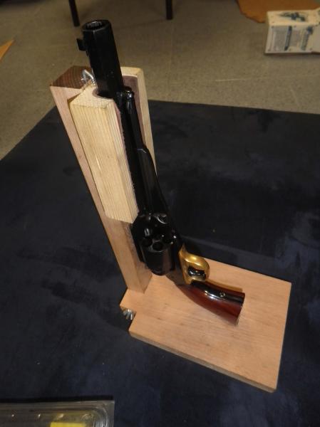 Lo primero sería un soporte para sujetar el revolver, como seguro que ya habrás visto en el campo de tiro. Lo de las dosis de pólvora ya preparadas a parte de todo es muy recomendable por la rapidez de carga, a mi me las recogieron del hospital.