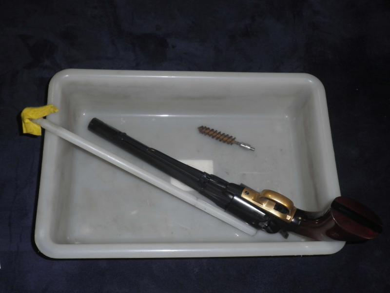 Para el tema de la limpieza debes proveerte de una cubeta, una grata del calibre 44 y yo utilizo como lavador una varilla de nylon de 10 mm a la que le he hecho a base de lima el lavador . Después de lavar con agua, fairy y grata de cobre, le paso un pedacito (calepino) de de bayeta de la que se utiliza para secar en el fregadero de esa amarilla que la venden en los chinos en rollo. Con ella seco el cañón y los alveolos del tambor interiormente y después lo engraso con un poco de aceite para armas. Ah!! Se me olvidaba después de secar con la bayeta le doy una buena dois de secador de pelo para que evapore el máximo de humedad.