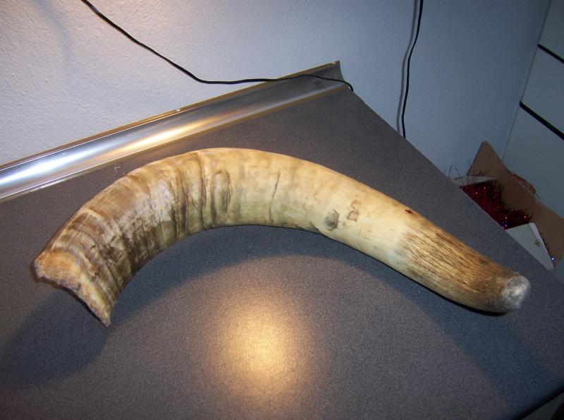 La parte del cuerno usada es aproximadamente la mitad, la parte más gruesa creo que la voy a aplanar para hacer cachas.