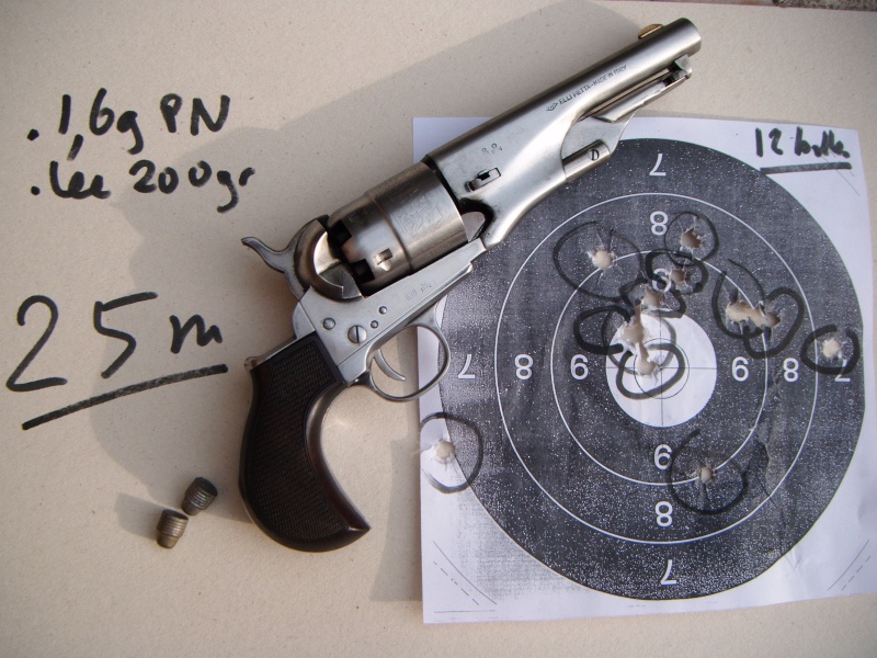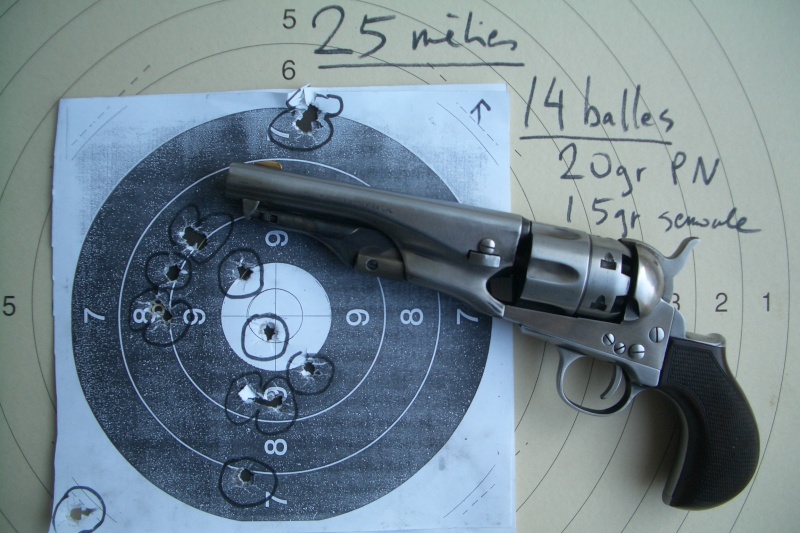 Las agrupaciones que he conseguido con los Colt, no las he hecho con los Remington. El Colt Army está mucho mejor equilibrado que el Remington, así como también con un diseño de empuñadura que facilita su empuñe. El Colt, no es tan cabezón.