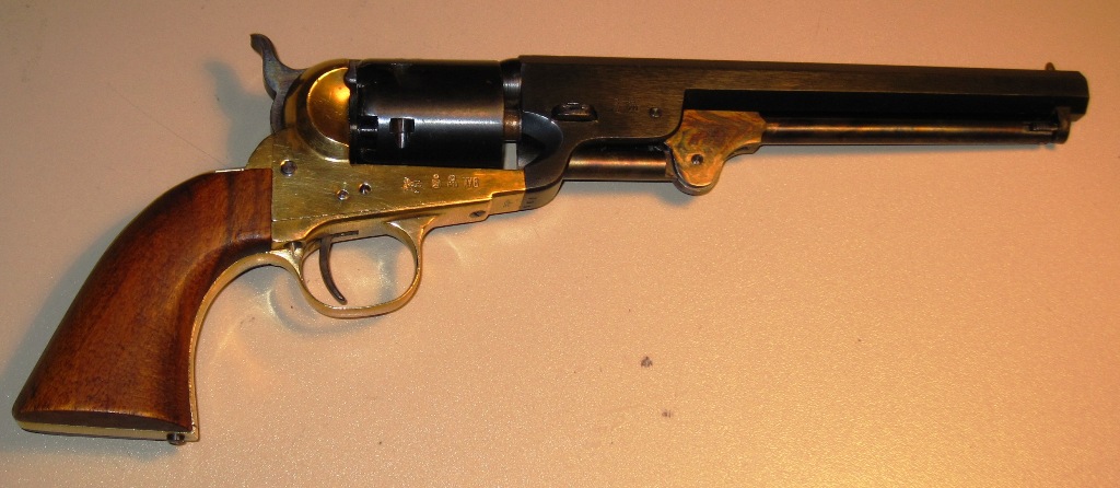 Soy un enamorado de los Colt Navy, tengo unos cuantos y te aseguro que van muy bien, dándoles el trato adecuado,no te pongas a clavar clavos con ellos, ja ja ja, y te durarán un montón. Los tengo de acero, de latón, de 4 3/4" a 14" de cañón, del cal.36 y del cal.44, con culatín (fuera de casa no que es arma de guerra, JA JA JA!!!)...y más...sus hermanos mayores y menores (Dragoon y Pocket)...es que padezco Coltitis, je je je. Lo que te aseguro es que tienen el mejor empuñamiento que conozco (y Pietta mejor que Uberti, para mí).