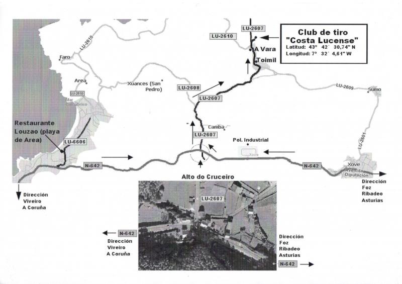 Mapa para llegar al campo de tiro de Xove: