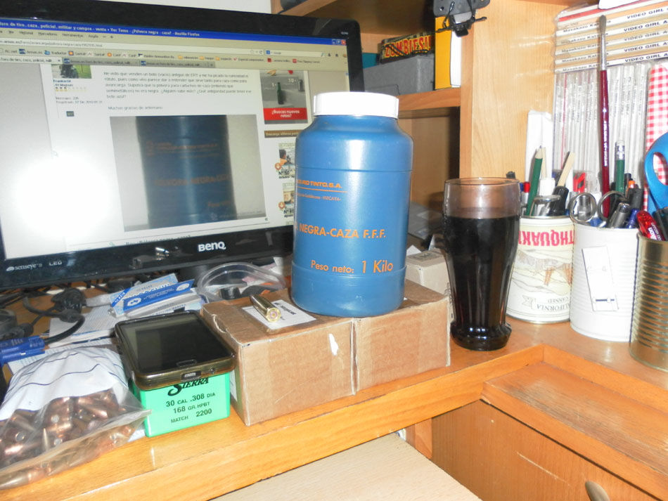 En la otra foto, de Iokin, el bote no lo había visto nunca. Creo que es lo que llaman pólvora francesa, de la que he oído hablar bien. Yo sólo conozco la suiza que es la que uso para avancarga en un revolver. Aún me han hablado de otra, de fabricación española, que no he llegado a ver, pero cuando empecé con avancarga me aconsejaron directamente la suiza.