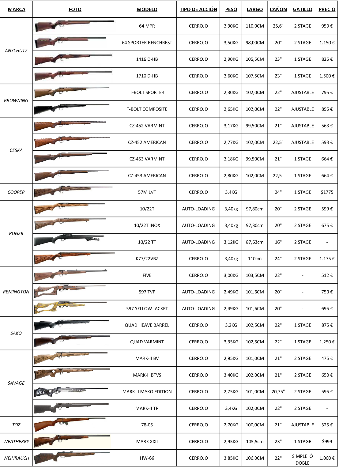 Hace tiempo publicé un artículo con muchas carabinas del .22lr para usarlas en BR y en MINI, te las cuelgo otra vez. Obviamente no están todos los modelos del mundo representados, pero es un ejemplo.