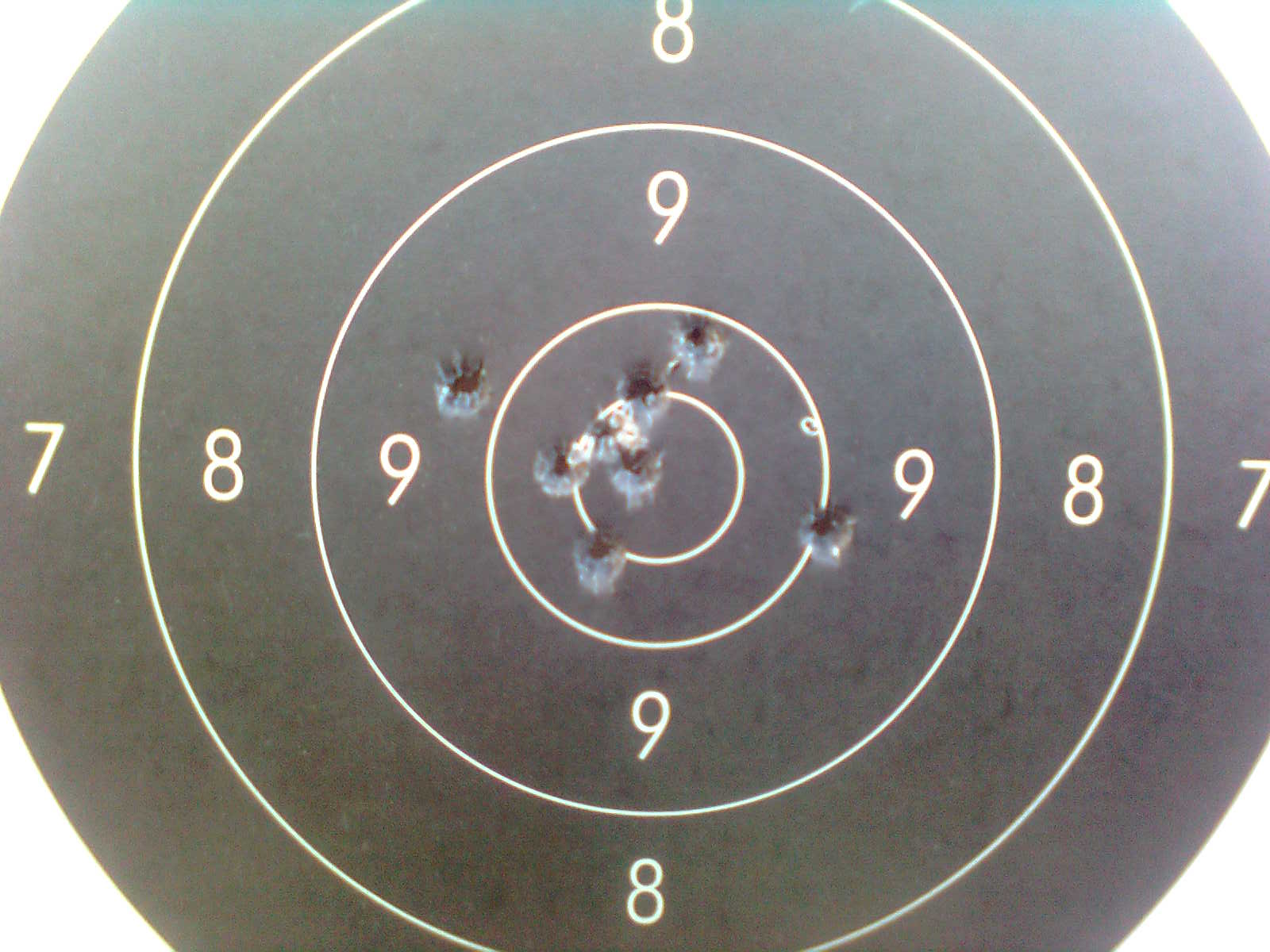 Tengo una foto de los 3 primeros tiros que pegue con el segun me lo dieron, con las miras abiertas y a 100m y la verdad que es una agrupacion muy buena.