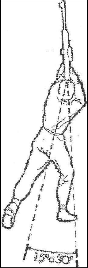 El eje del cuerpo forma un ángulo de unos 15 - 30 grados con la línea de mira.