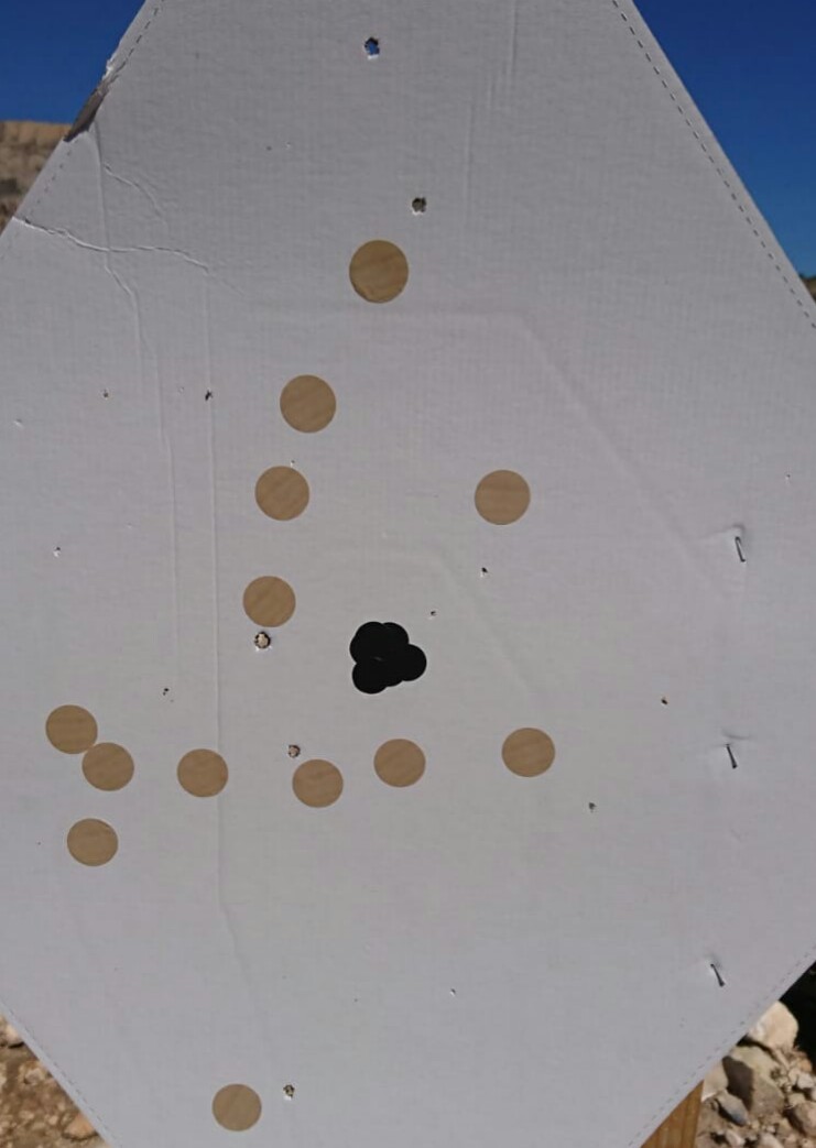 Unas fotos del blanco a 200 m. con el cañón de 11.9". calibre .222R.