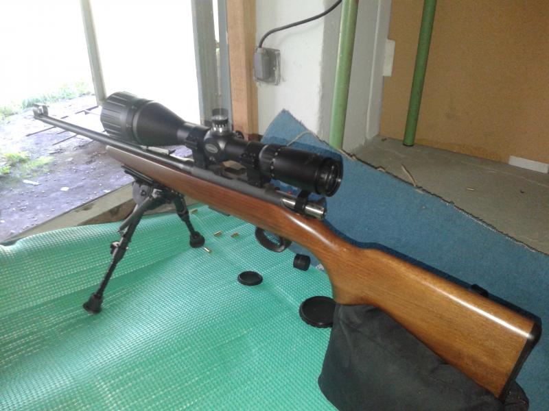 A ver si se ve bien la foto. El visor es un BSA 6-25x56 y estéticamente canta mucho en un arma tan pequeña.
