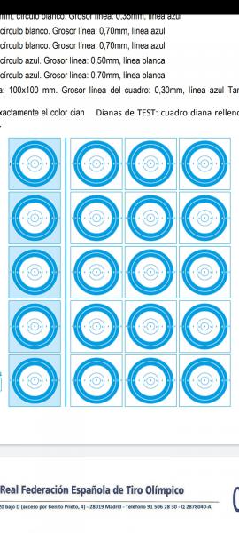 El blanco de 100 m tiene quince dianas en cinco líneas y tres columnas y se pegan dos tiros a cada diana. 10x15=150 puntos.