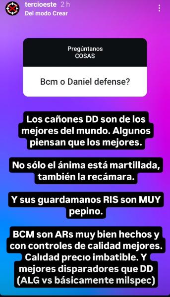 Menos mal que has podido comprobar por ti mismo lo que yo te decía y sin embargo negabas, que BCM calidad/precio está por encima de DD .......con precios de allí por supuesto, aquí han salido a la par........y la configuración mejor de 12" y pistol que 16" y carbine para el 300 blk y para lo que podemos hacer por aquí o por Polonia . :saluting-soldier: