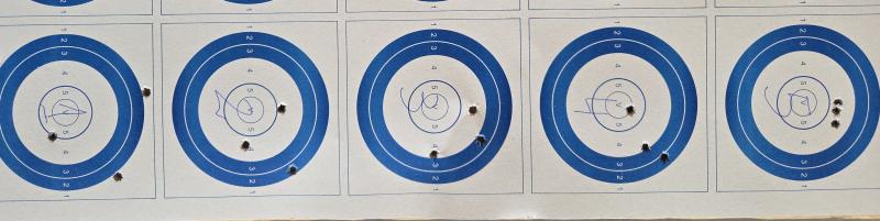 Os paso una foto de las 5 primeras dianas realizadas seguidas sin ningún tiempo de descanso entre ellas, donde van mejorando hasta conseguir una última francamente buena.