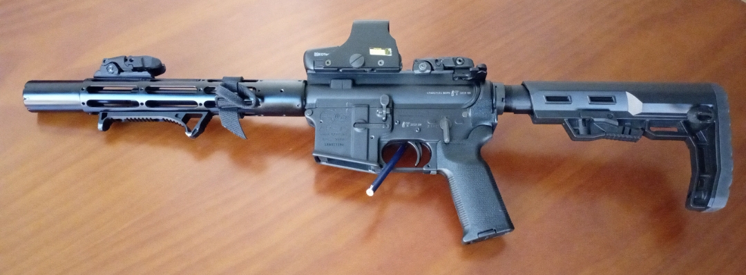 colito escribió:Colt AR 15 cañón de 12", guardamanos Tony Sistem, empuñadura y miras de respaldo Magpul, gatillo CMC, culata German tactical, visor EOTech, cubre cañón artesanal.