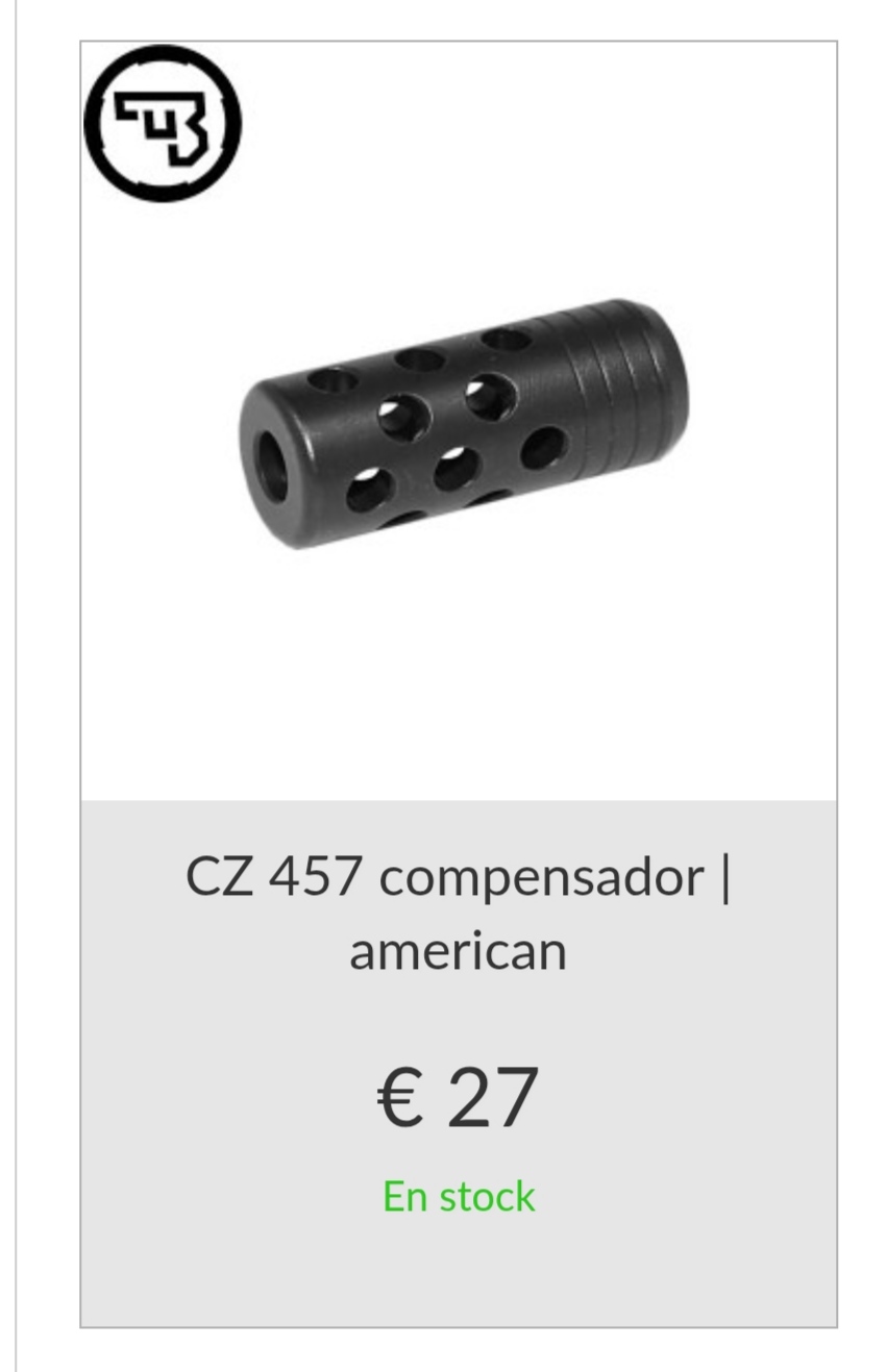 Soy un novato en todo esto y me surge la siguiente duda, que compensador llevaría un CZ 457 sintético en 17 HMR según la web de CZ existen estos dos modelos, la rosca es la misma en los dos y coincide con la de mi cañón pero no encuentro diferencias entre los dos y me crea dudas.