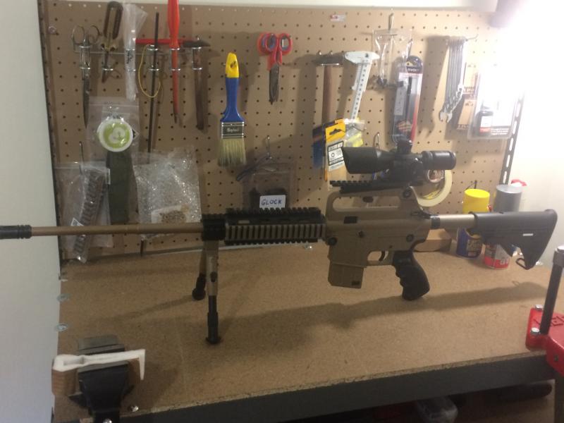 Ante la imposibilidad de conseguir una ruger sr22... o un kit nomad en españa... pues ha habido que montar algo parecido.... con un kit archangel y el nuevo guarda manos largo. Retenida de cargador sobre dimensionada. Buffer. Y alguna cosilla mas.