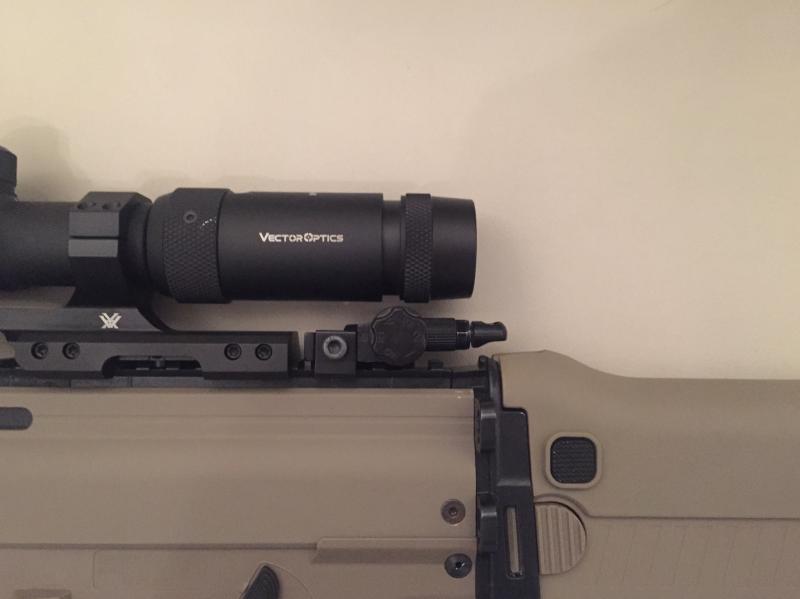 El otro día la probé en el campo de tiro de Valdemoro y me impresionó la precisión y agrupación a 100m con el visor Vector Forester 1x-5x, el cual recomiendo encarecidamente y la copia de la monturs GEISSELE.
