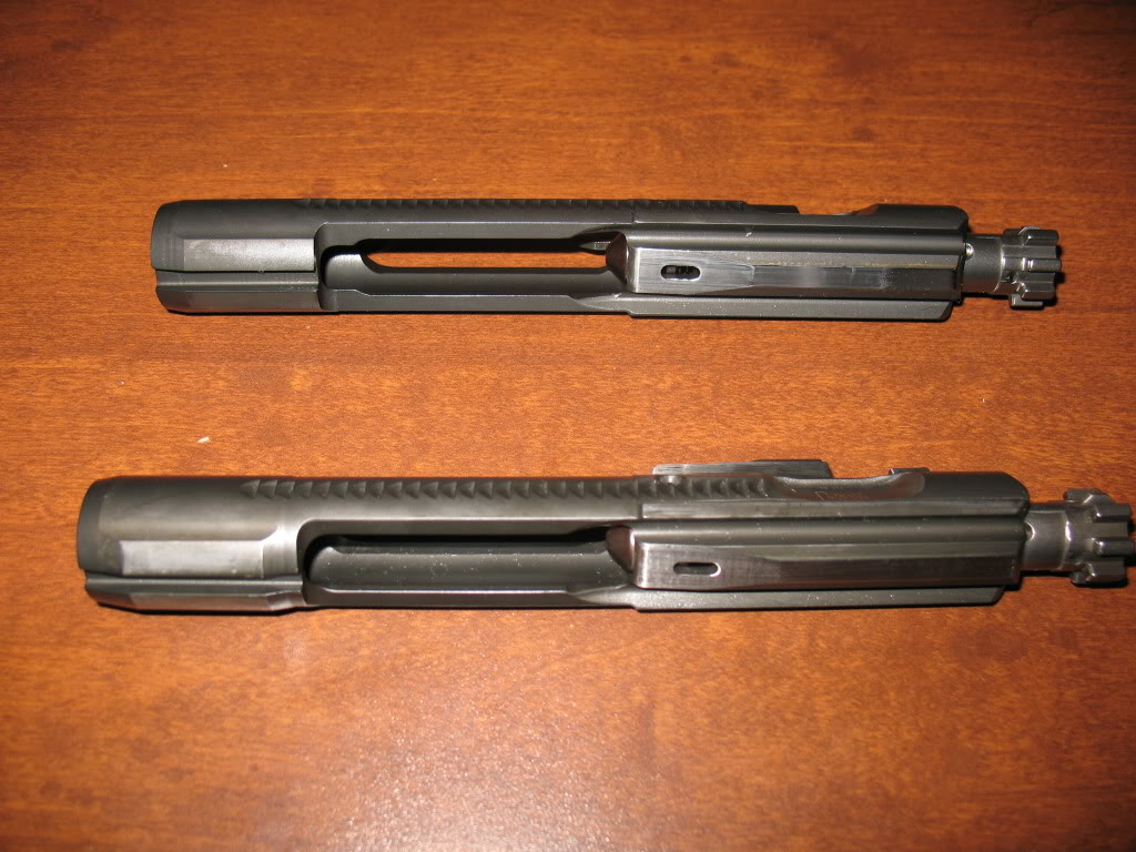 El cierre del MR lleva un rebaje en el lado izquierdo. La recamara del MR tiene esa forma delante del Barrel Extension para evitar que se puedan usar cierres de otros ARs.