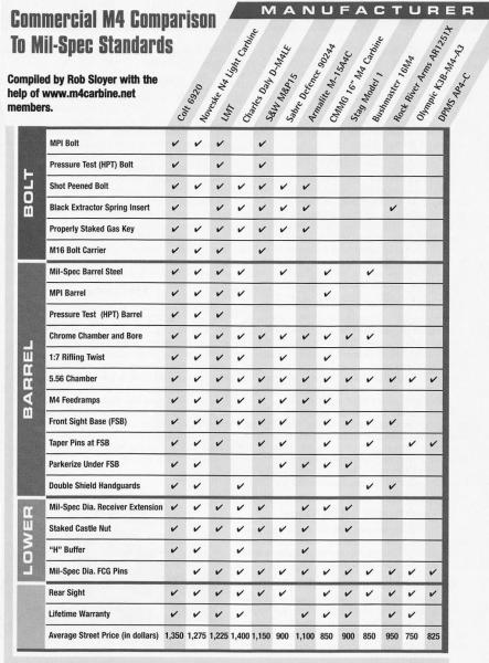 Hay muchos listados sobre la clasificación de AR, pero los más fiables y objetivos han sido las tablas de Rob Sloyer, ya que principalmente estaban basadas en materiales, técnicas, controles y acabados de fabricación. De hecho eran tan fiables que varias de las compañías fabricantes recogidas por está clasificación, entre ellas Remington en sus filiales DPMS y Bushmaster, le amenazaron con demandarle. (Realmente creo que llegaron a hacerlo y le obligaron a cerrar la clasificación hasta que no estuviera resuelta la demanda.)
