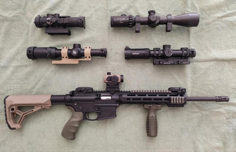 Con el mas que infame disparador Mil-Spec que trae, con un visor chino de Aliexpress y marca registrada, como Vector, Visionking, Discovery, Marcool, vas sobrado, te lo garantizo, eso sí, no esperes grandes agrupaciones a 50 m, si no, mas bien un tiro aquí, y otro allá, y te lo digo por experiencia propia......