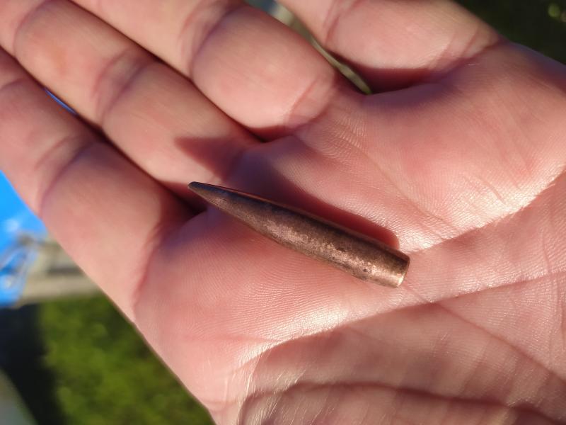 Son ahora las 4 de la tarde. Justo después de escribir el post anterior puse un proyectil sobre un parche impregnado en bore tech para ver su eficacia . Aproximadamente una hora y cuarto. Este es el resultado