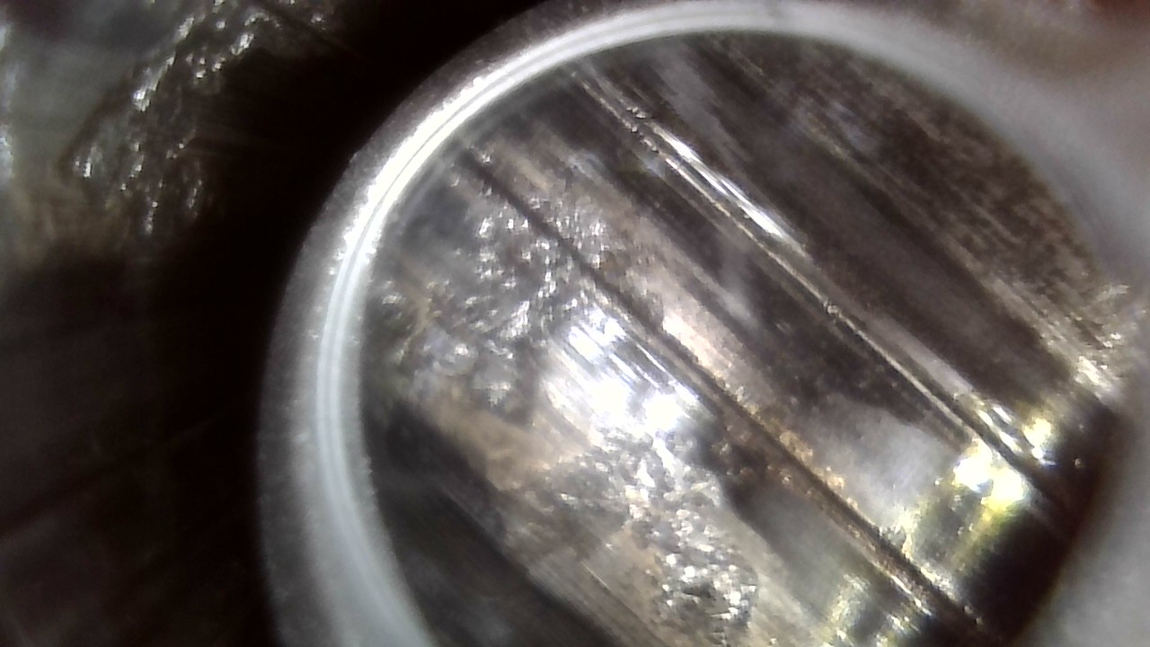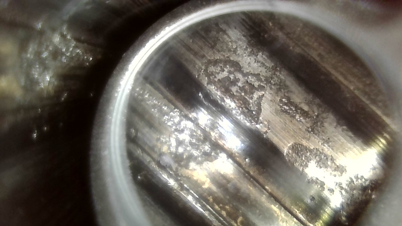 He visto esas mismas "coqueras" en un cañón de escopeta, como te dicen los compañeros es fruto de pistones o pólvora corrosivas con azufre lo que produce SO2 (sulfidrico) lo que combinado con la humedad H2O se convierte en SO4H2 es decir acido sulfúrico lo que provoca una corrosión importante en el acero al carbono de los cañones.