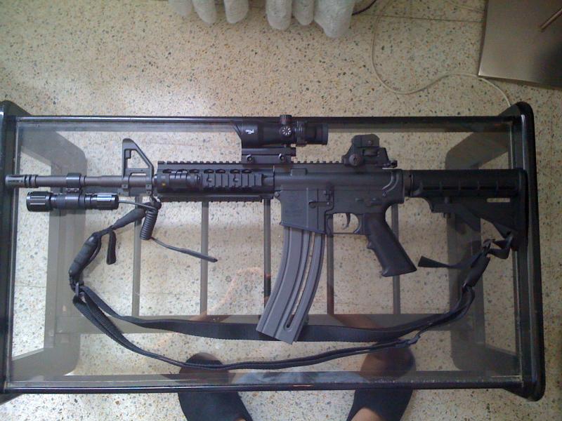 es lo mas parecido a un autentico M4, no es un sucedaneo con tornillos como el MP5, este esun armazon M16 entubado con un cañon del 22.