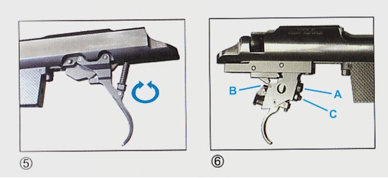 Empujas el gatillo hacia adelante y queda montado el disparador; luego con solo apoyar suavemente el dedo en el gatillo sale el disparo. El que haya competido con armas de avancarga conocera este sistema de disparo.