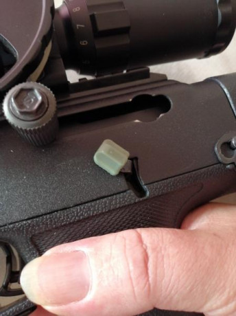 Hola, gracias por contestar tan rápido.Es que le instalé un punto rojo leapers y cuando lo puse a tiro me di cuenta que al disparar con miras abiertas el tiro iba bajo, probaré de subir la mira del cañón al máximo porque la de alza y deriva ya la tengo a tope de lo que la puedo subir.Por cierto muy chulo el protector del seguro,lastima que yo sea zurdo.