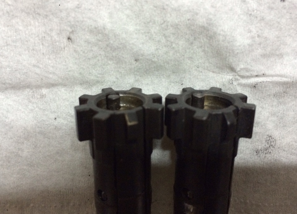 A simple vista parece que un eyector (el del cerrojo que funcione en ambos rifles) es algo más largo que el otro (adjunto foto); sobre la dureza, tampoco tengo cómo medirlo de forma precisa, pero he probado a presionar los dos y el que funciona siempre lo noto un pelín más duro. Pero vamos, que la diferencia es mínima...