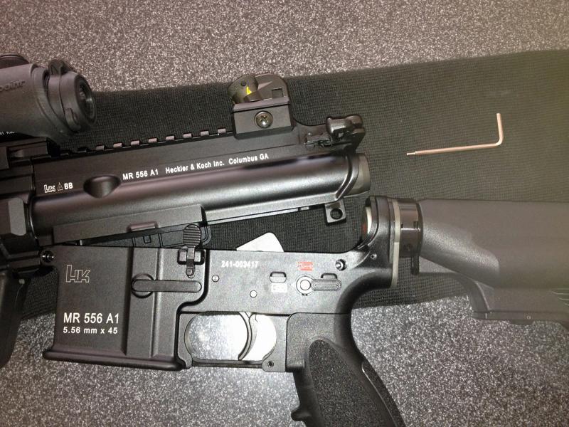 Upper abierto, curiosamente HK quería quitar la tapa de la ventana expulsora, al final optaron por dejarla, pero de plástico en vez de aluminio como en el resto de los AR.