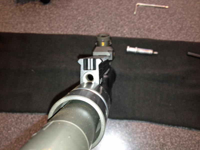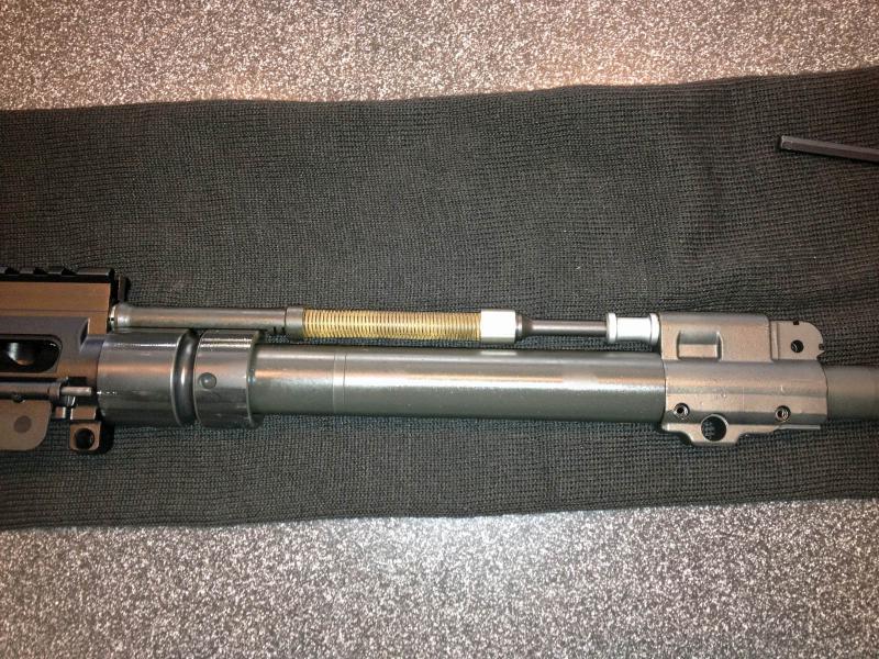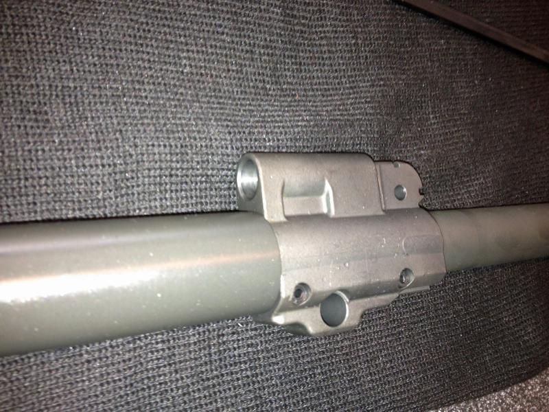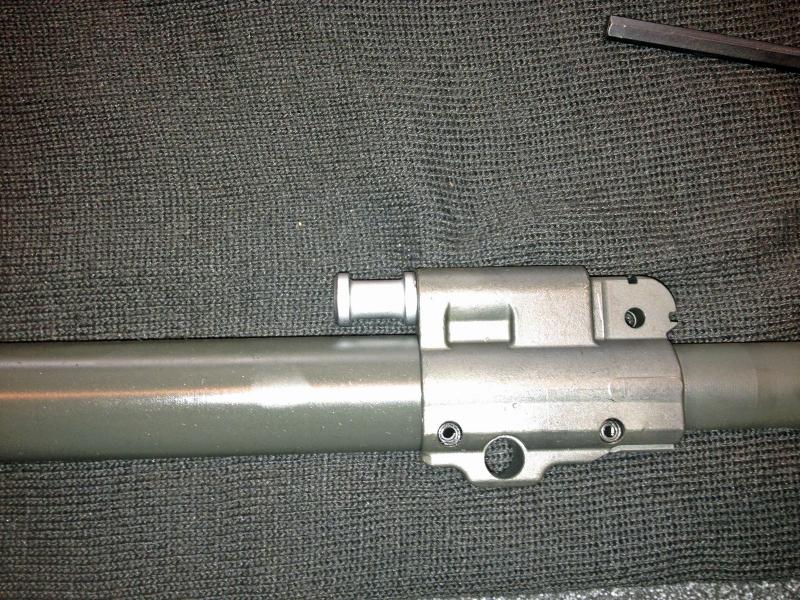 Toma de gas, puede verse que es más voluminosa que la de un AR y también mucho más pesada.